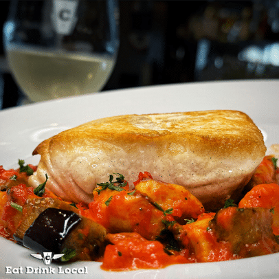 potato gnocchi • eggplant • chive oil • romesco sauce